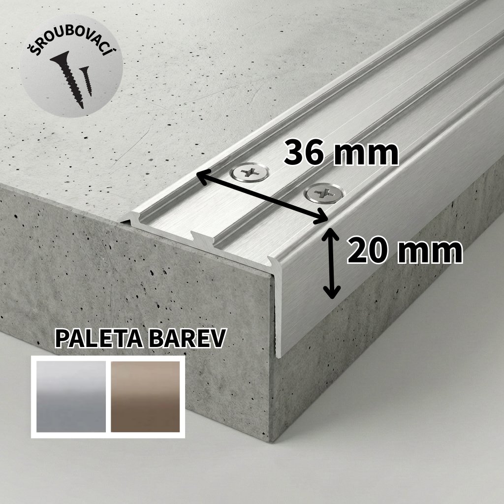 A 37 SCHODOVÉ LIŠTY - ŠROUBOVACÍ, 36x20 mm