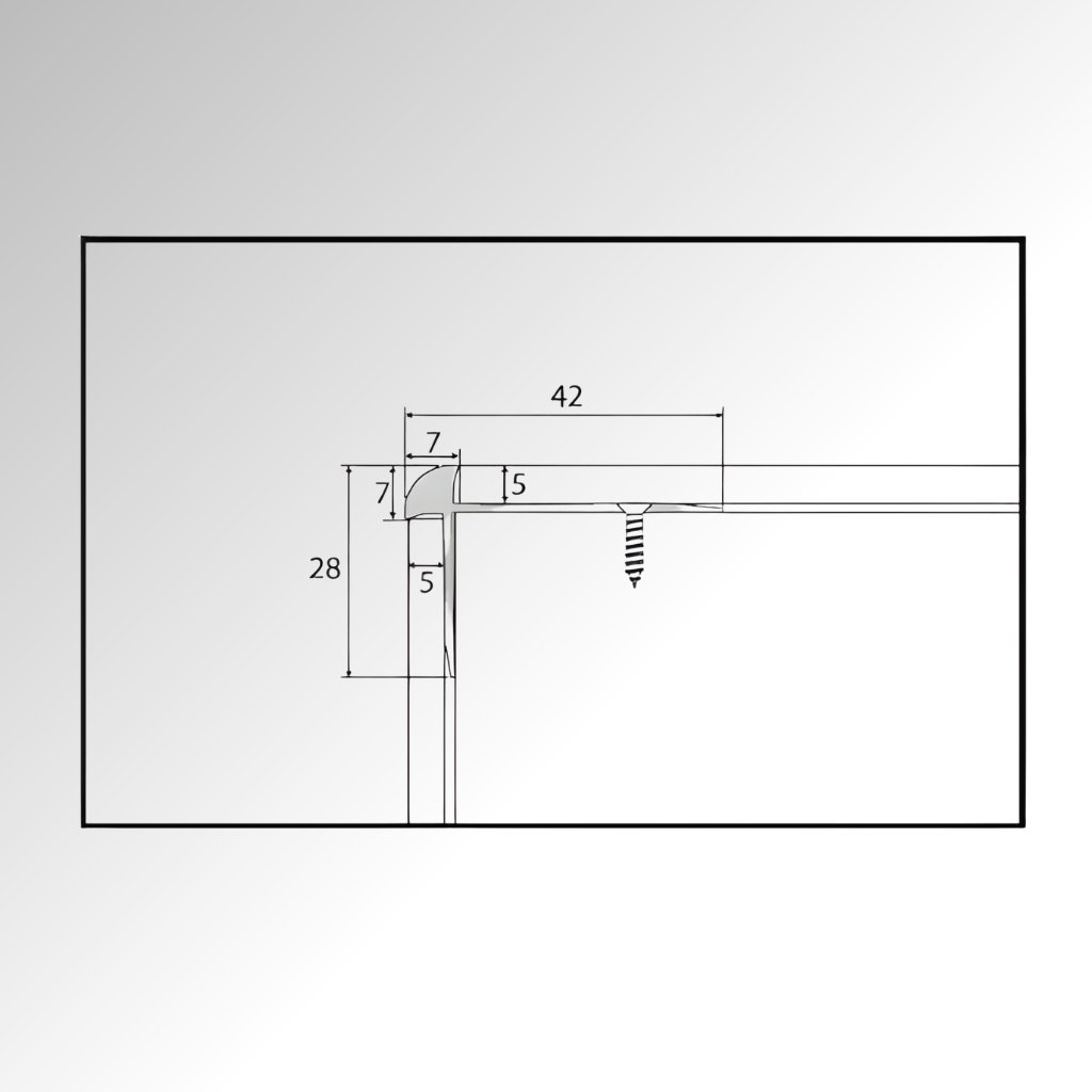 42x28 mm schodový profil s výškou 5 mm.