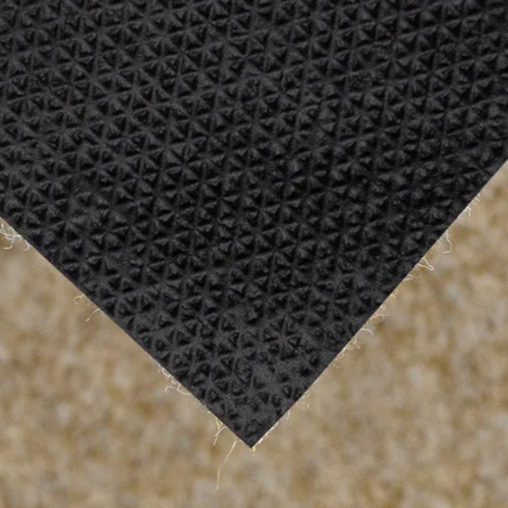 (B) Levný, vpichovaný koberec vhodný do běžně zatížených bytových prostor. Podklad: gel. Složení: 100% PP.