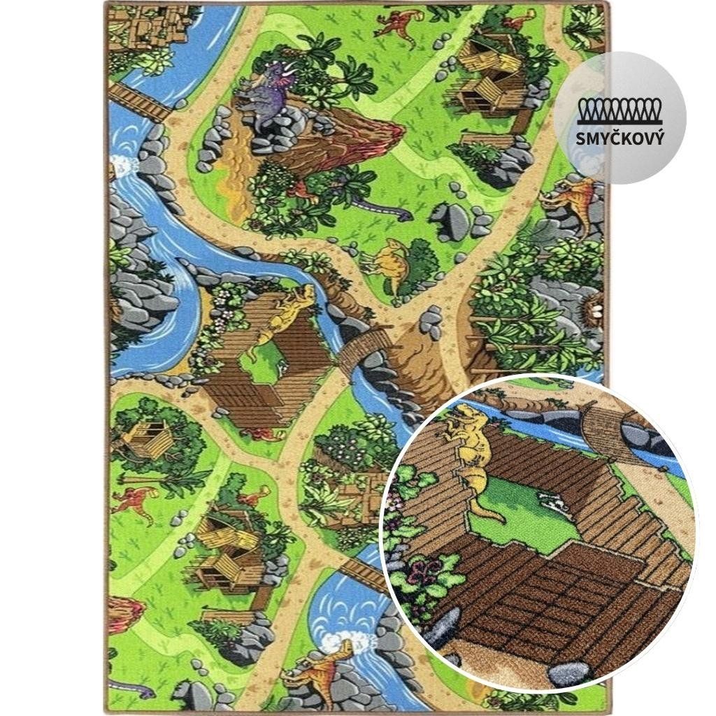 Dětský smyčkový kusový koberec s potiskem pro rozvoj dětské fantazie. Zakoupením tohoto koberce uděláte radost nejen dětem, ale také zútulníte každý kout v místnosti. Použitím nízké smyčky je docílen plynulý chod hraček, např. jízda s autíčky nebo stavění kostek.