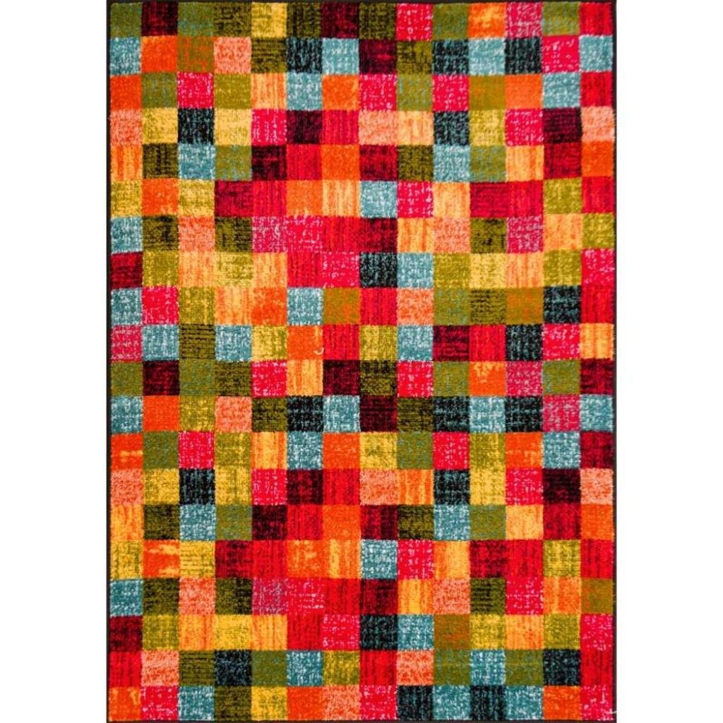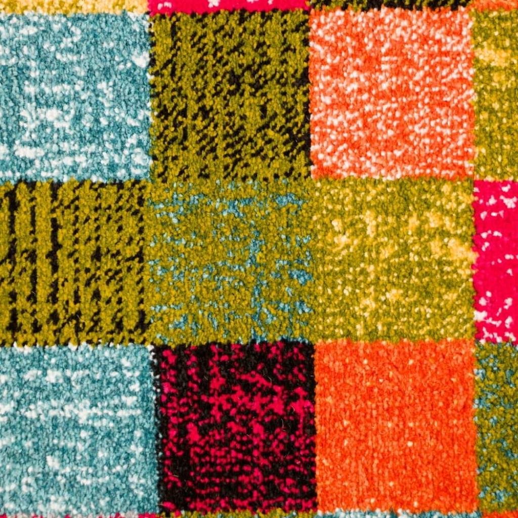 Kusový koberec s nižším vlasem s abstraktním vzorem krásně rozjasní dětský, studentský i obývací pokoj. Koberec má obšitý obvod.