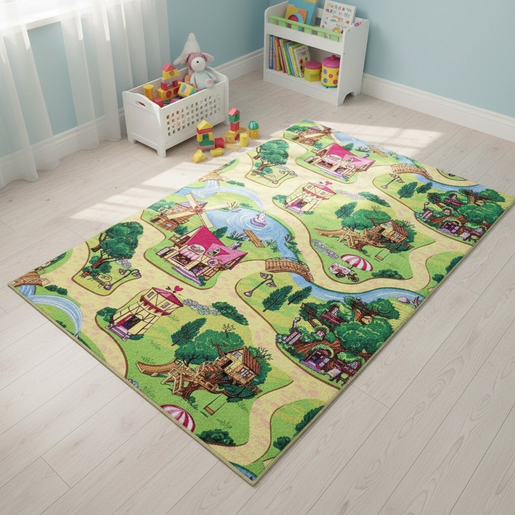 Objevte svět fantazie s dětským kobercem POHÁDKOVÁ VESNICE – perfektním doplňkem každého pokojíčku. Tento koberec přitáhne pozornost vašich dětí díky veselému designu plnému postaviček a barev, které oživí každý kout. Není to jen o vzhledu – smyčkový vlas z kvalitního polyamidu poskytuje příjemný měkký povrch a zároveň je odolný vůči opotřebení, takže koberec vydrží všechny hry a dobrodružství.