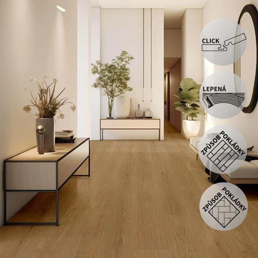 | ? Způsob montáže: | Lepená podlaha (Fix), Plovoucí podlaha (Click) |